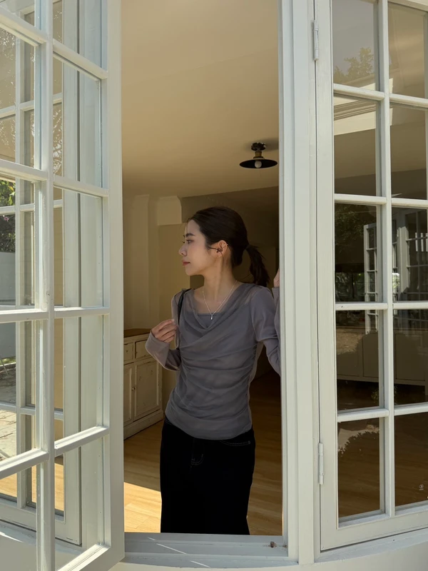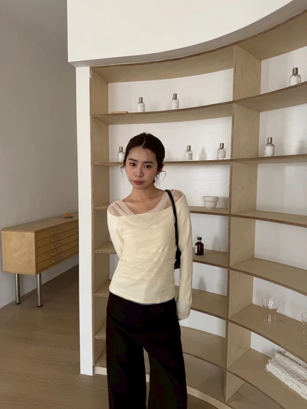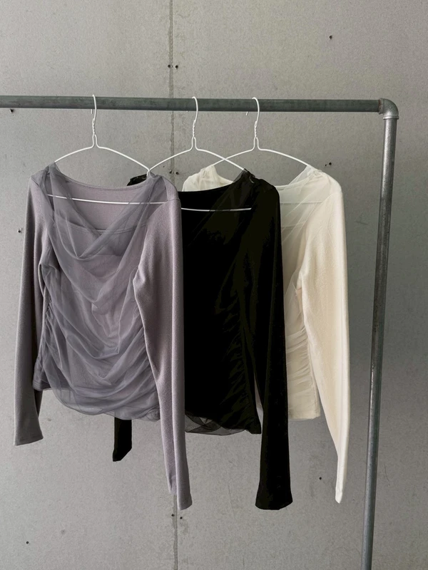 簡約一字領網紗上衣