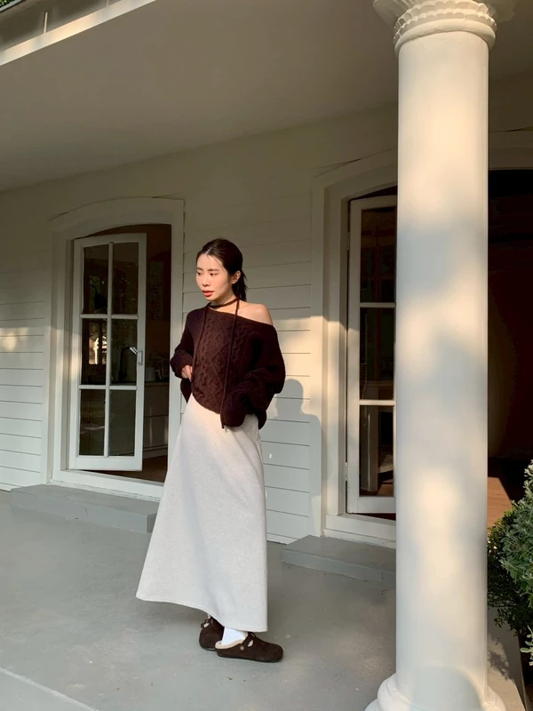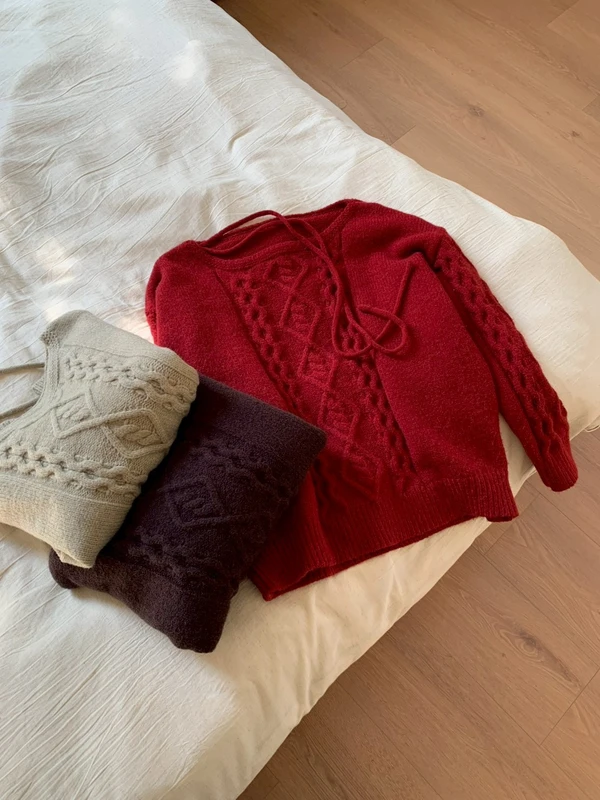 斜肩麻花針織毛衣/3色