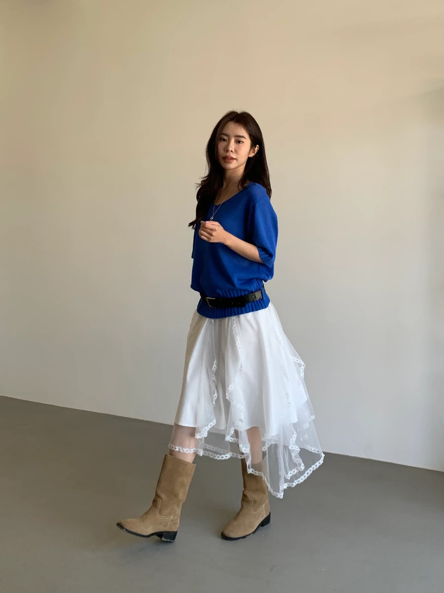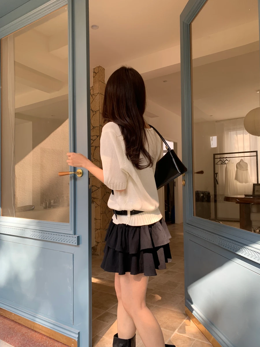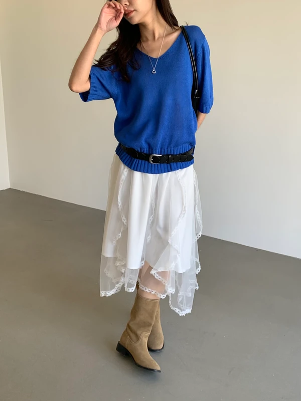 遊走愛丁堡 v領針織上衣(附皮帶)/3色