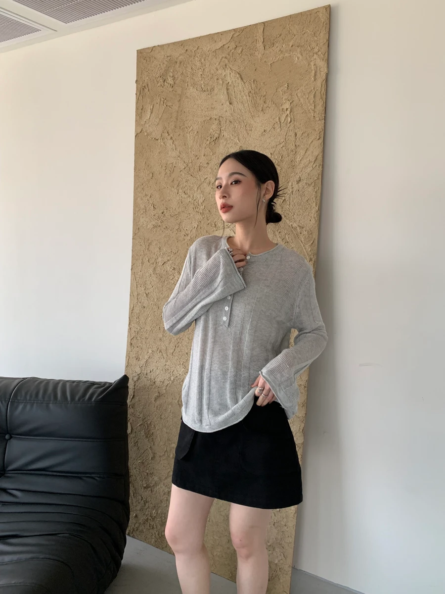 藏不住的慵懶氣息 半排釦針織/3色