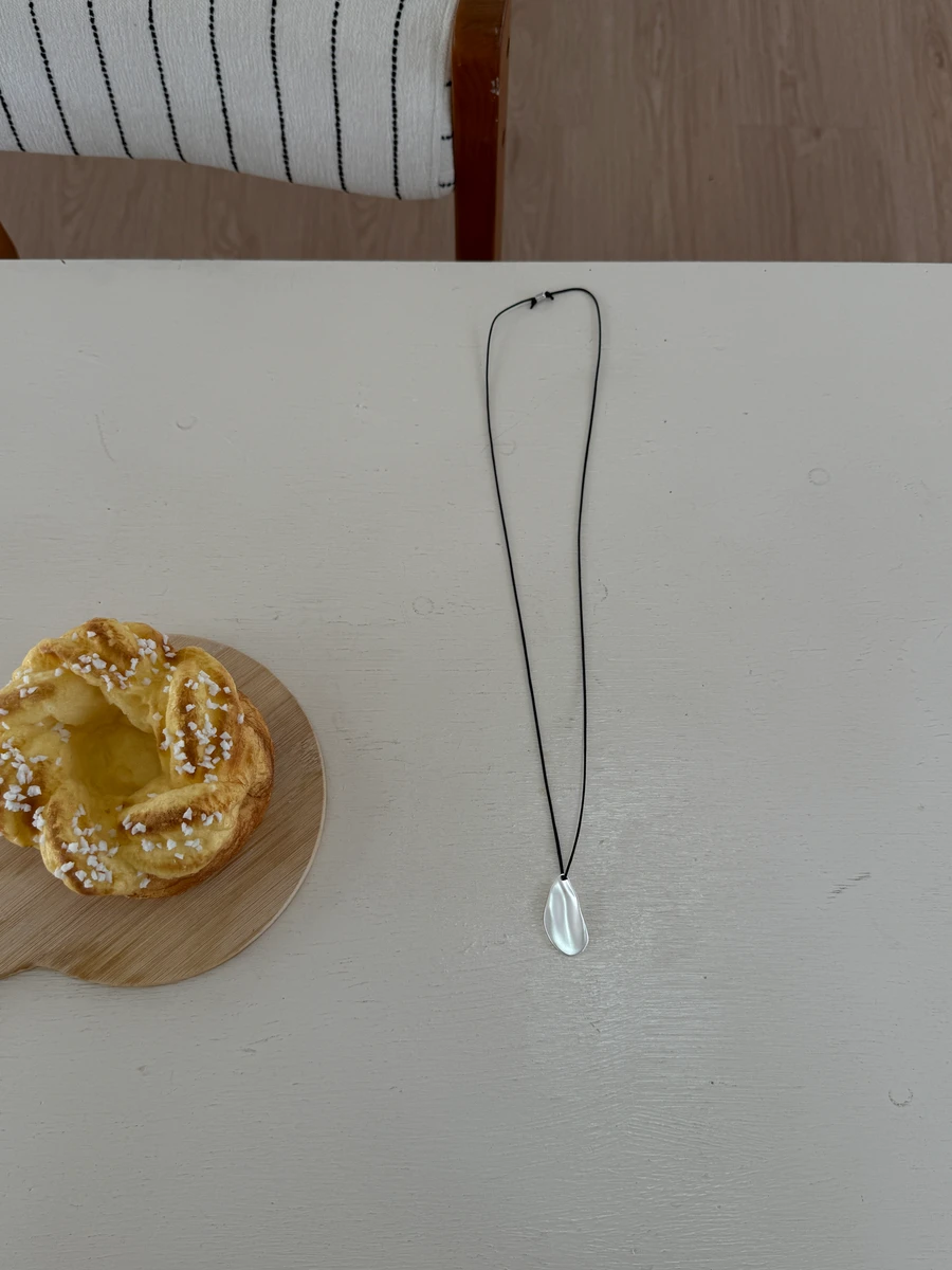 霧銀雲片黑繩項鍊
