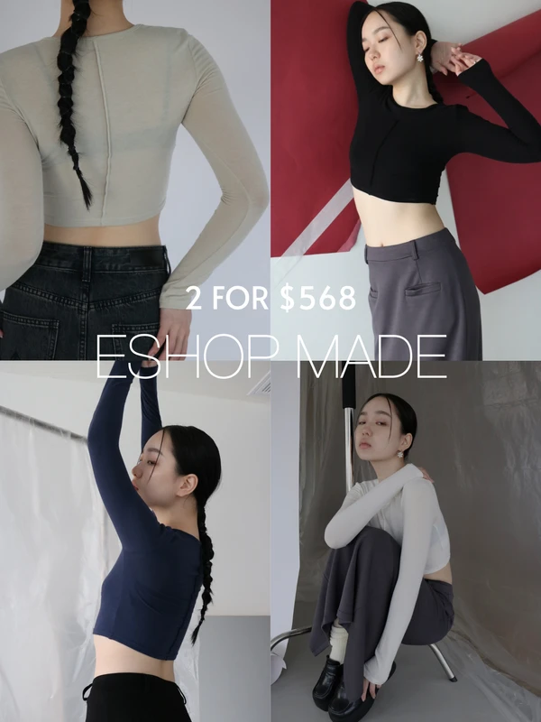 《組合優惠價2件$568》ESHOPMADE壓折中線短版棉質上衣