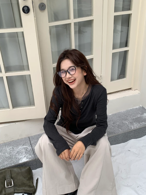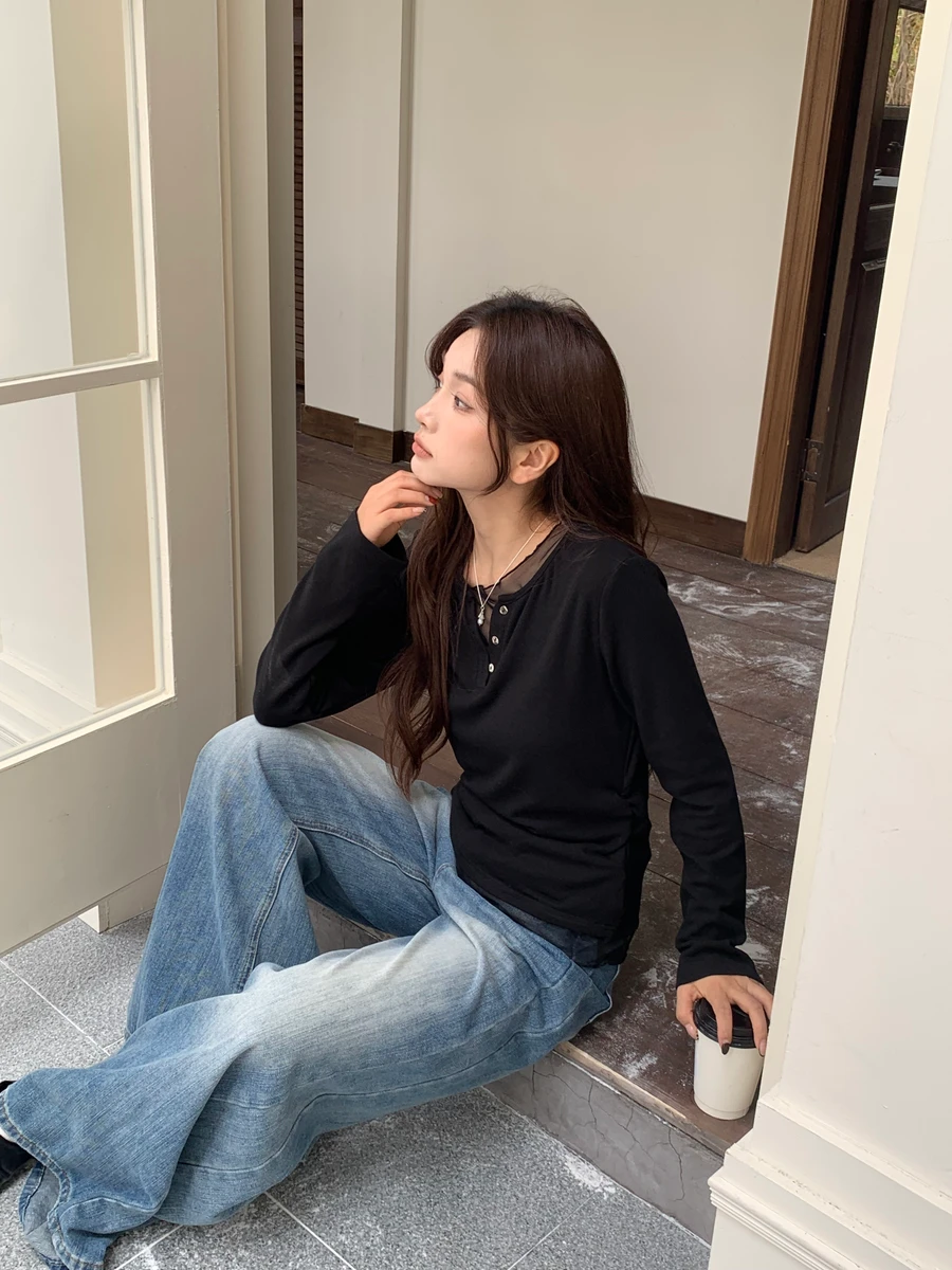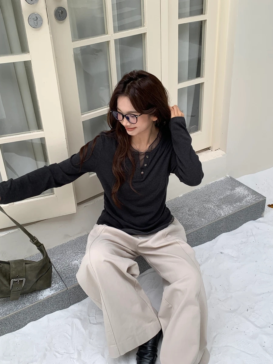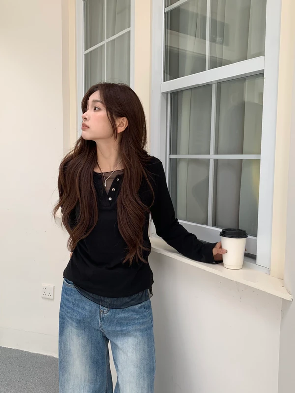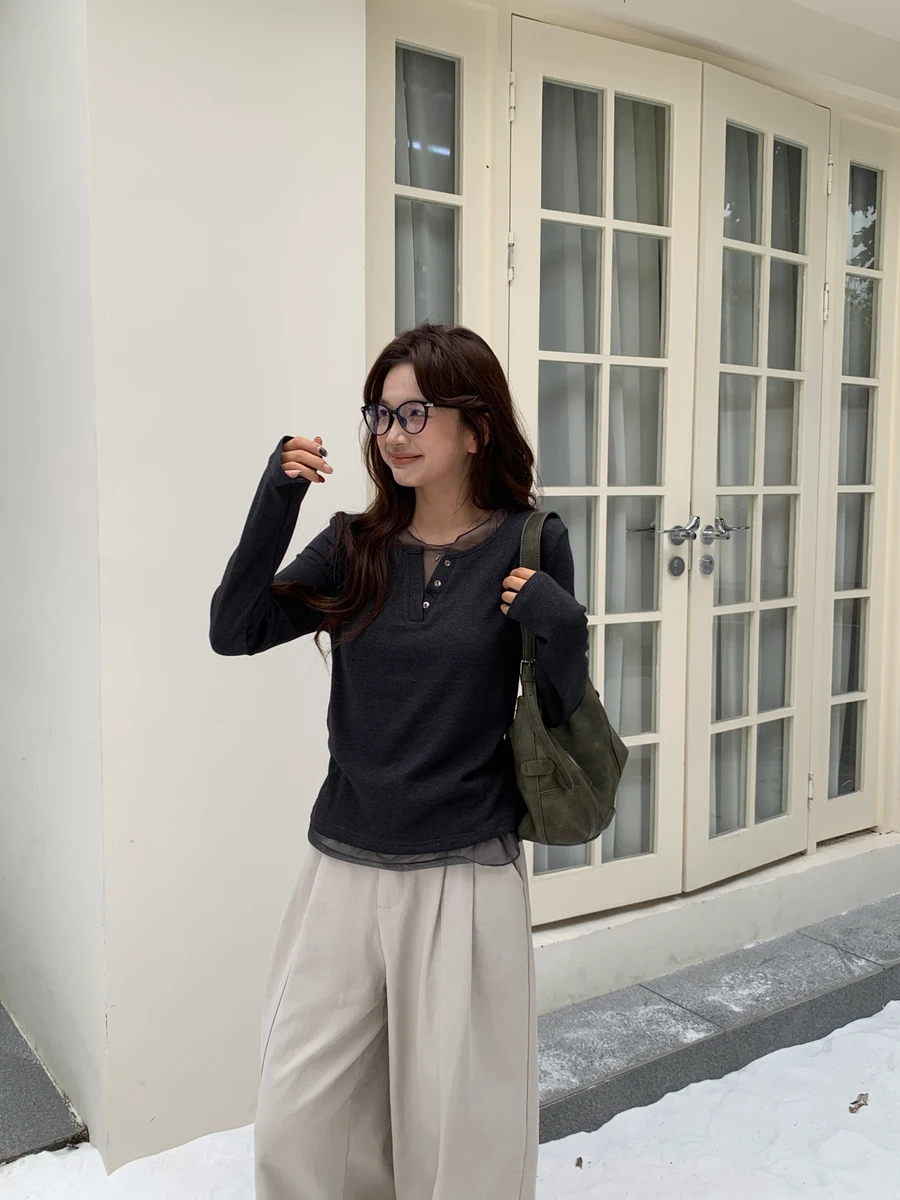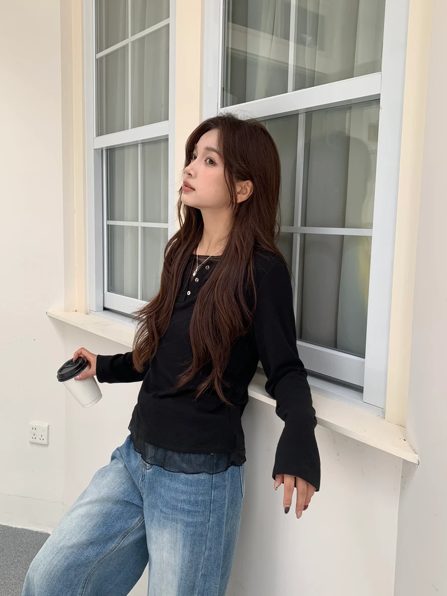親膚拼接透紗上衣/3色